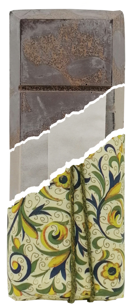 Semplicemente pura pasta di cacao addolcita e aromatizzata, viene lavorata a freddo per non alterare le proprietà organolettiche del cacao, come attesta la patina bianca che avvolge la tavoletta, per essere poi racchiusa in bustina per preservarne il gusto e in un elegante involucro di carta.